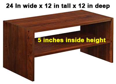 4. I used two of these "shoe racks" side-by-side to hold most of my equpment. Each is 24 inches wide = total of 48 inches wide on the desk.