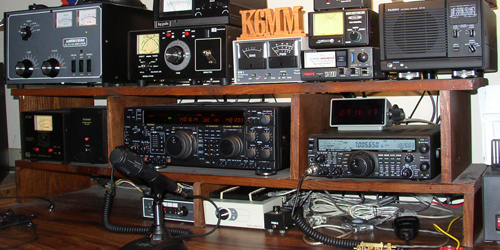 The shelf holding my equipment today was made in about 2 hours from two ClosetMaid shoe racks purchased from Amazon for about $20 each. The inside height of the shelf is 5 inches...more than enough to accommodate most small-form transceivers or amplifiers. My K3 and KPA500 fit perfectly in this shelf. |